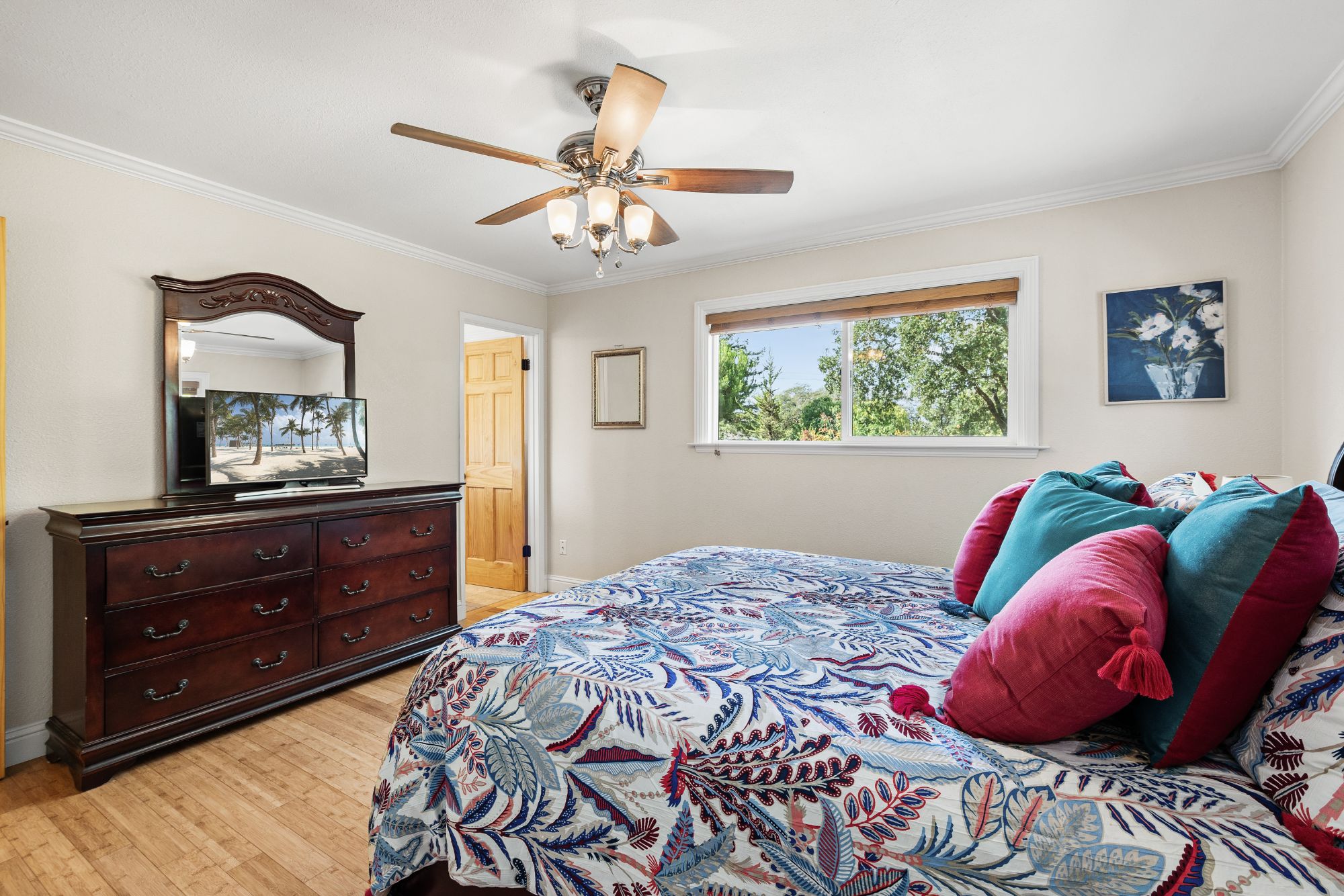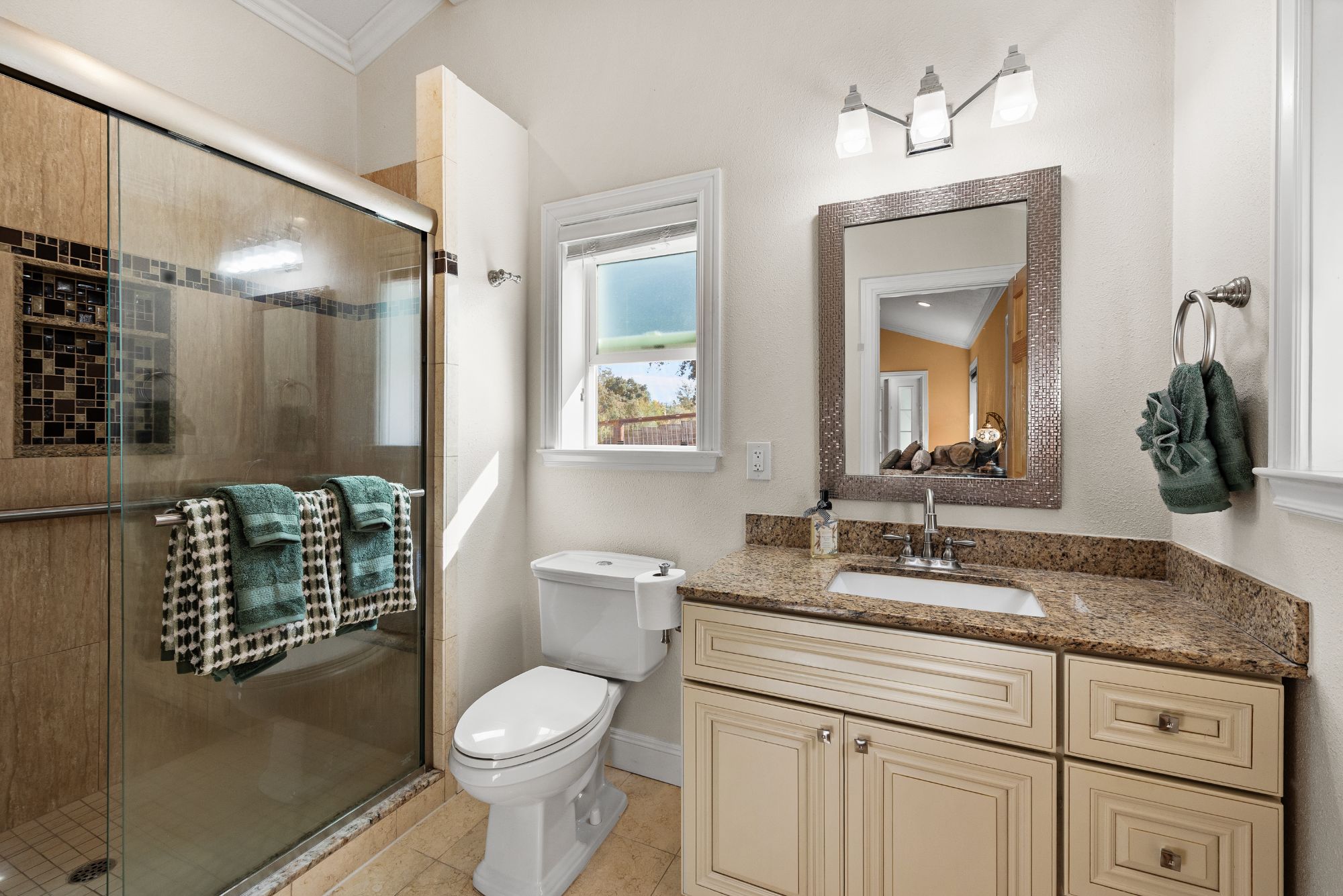 Inside, you’ll find two primary suites, each with its own private en suite bathroom, creating flexibility for multi-generational living or guest comfort. A separate guest unit adds even more versatility, complete with its own bedroom and bathroom — perfect for visitors, extended family, or a private home office.